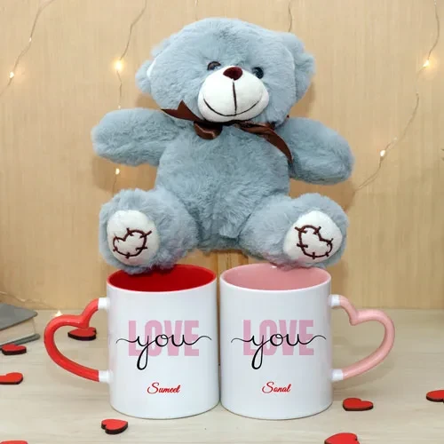 Two Number of Heart Handle Mug & One Cute Teddy Bear