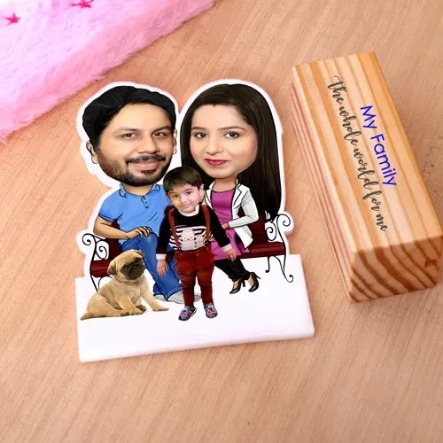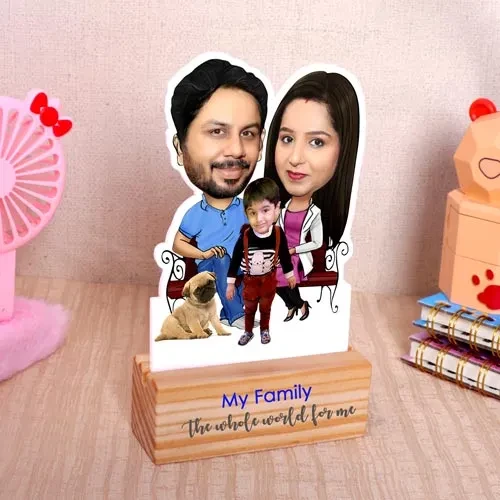 Caricature is made from acrylic sheet. Personalized it with 3 front facing close up image (Couple face & 1 Child face).