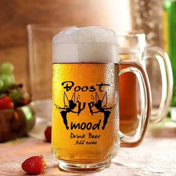 it "Boost up Mood Drink Beer". It also be personalized with the name