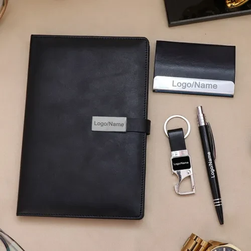 One Premium Diary with Pen, card holder & keychain in designer gift box. By