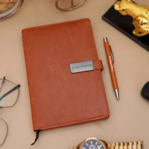 Imported Tan Colour Leather Diary Pen Set is a perfect gift for Corporate