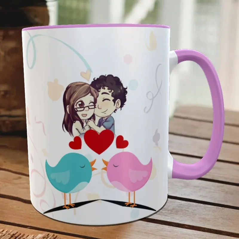 The Pink ceramic mug with pictures of you & your loved one on it will show