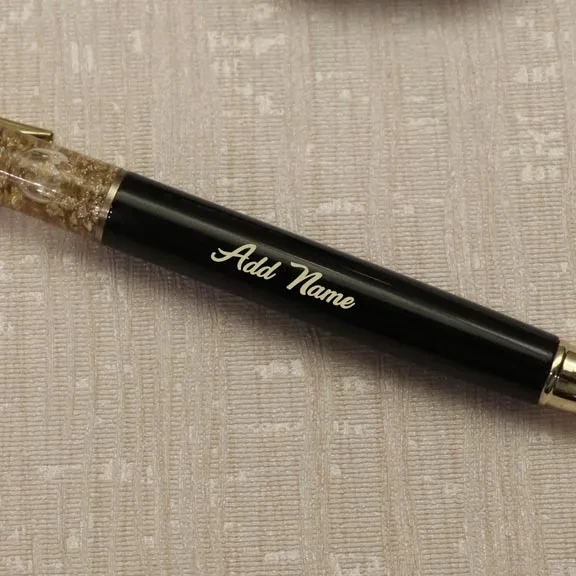 personalized by engraving name or initials of the recipient. The blue ink pen