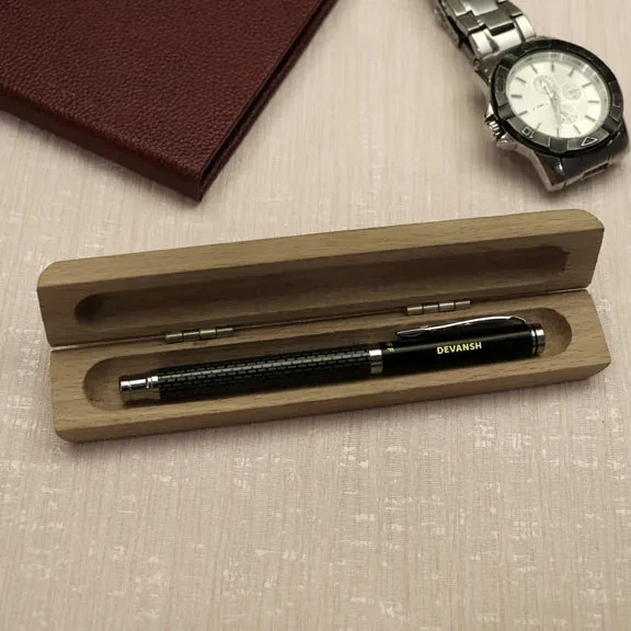 of the recipient. The blue ink pen comes with a wooden box. By gifting it you