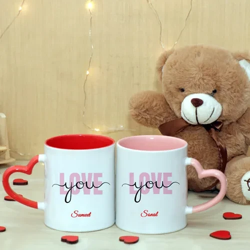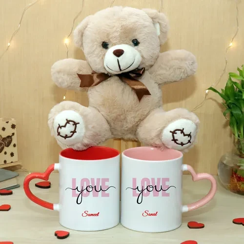 Two Number of Heart Handle Mug & One Cute Teddy Bear