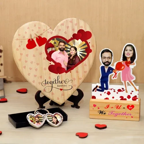 wooden plaque, one metal keychain for Couple, One Propose Couple Caricature. It’s